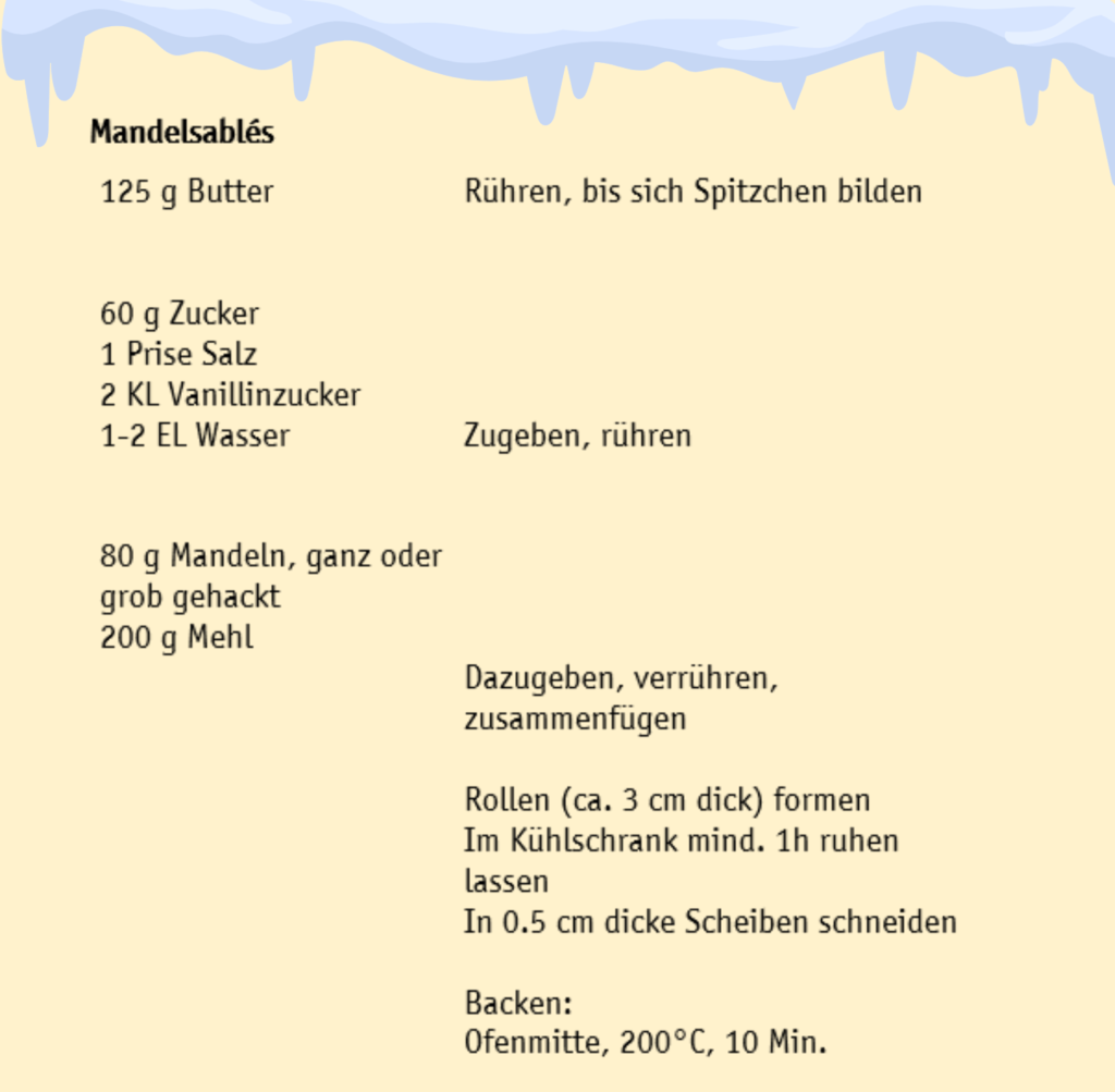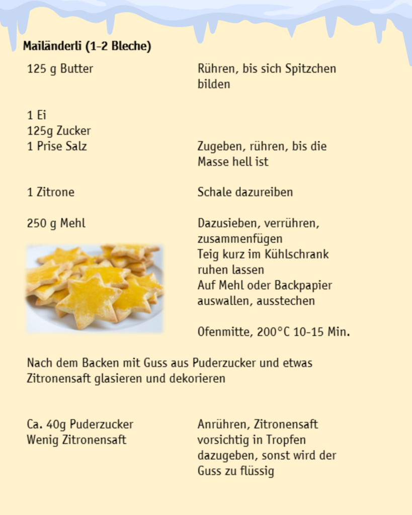 Guetzli Rezepte (einfache Menge für zu Hause – im Jugi machen wir jeweils das zwei- bis dreifache davon)