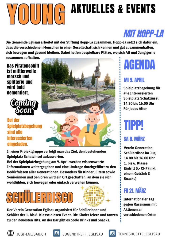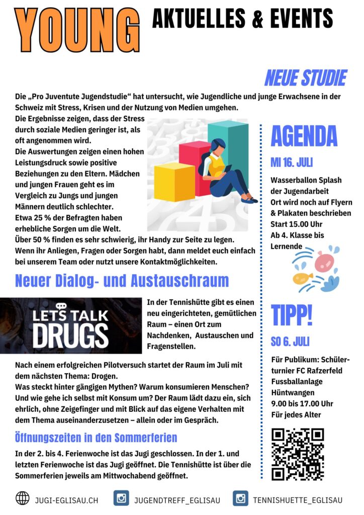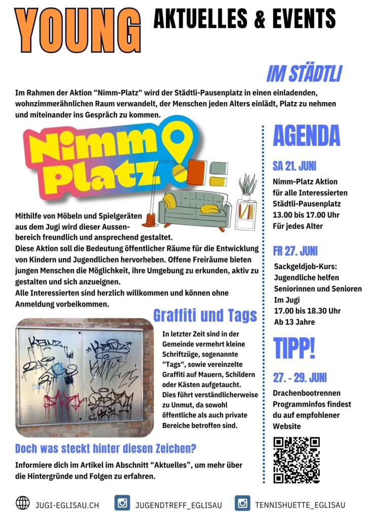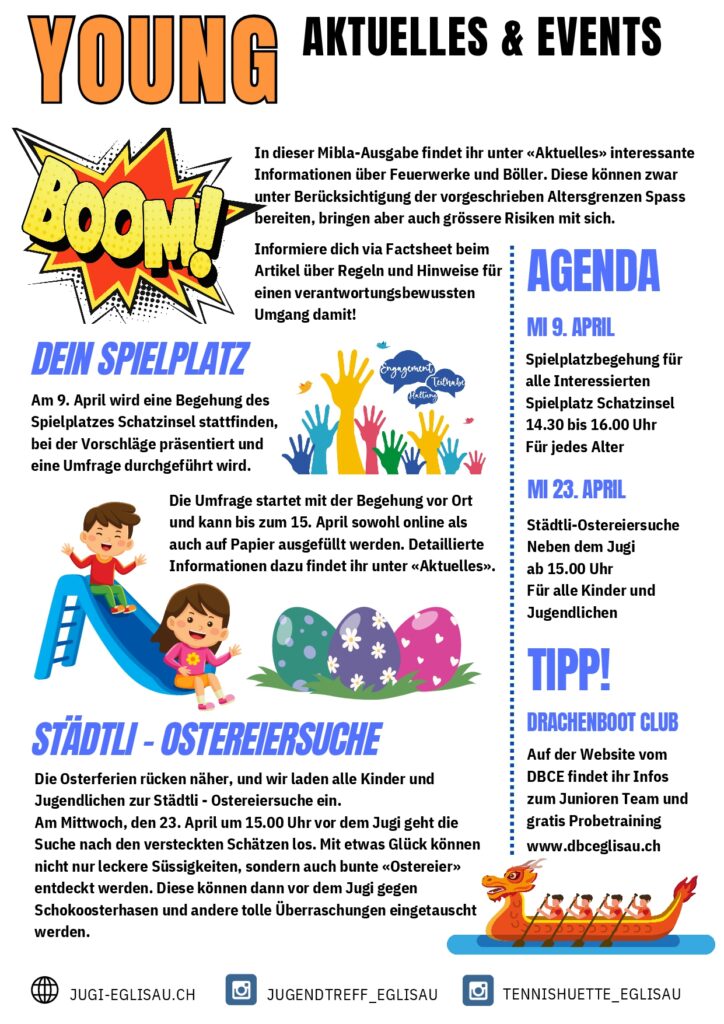 Die Seite „YOUNG – Aktuelles und Events“ erscheint jeden Monat im Mitteilungsblatt (Mibla) der Gemeinde Eglisau. Hier findest du alle bisherigen Ausgaben.