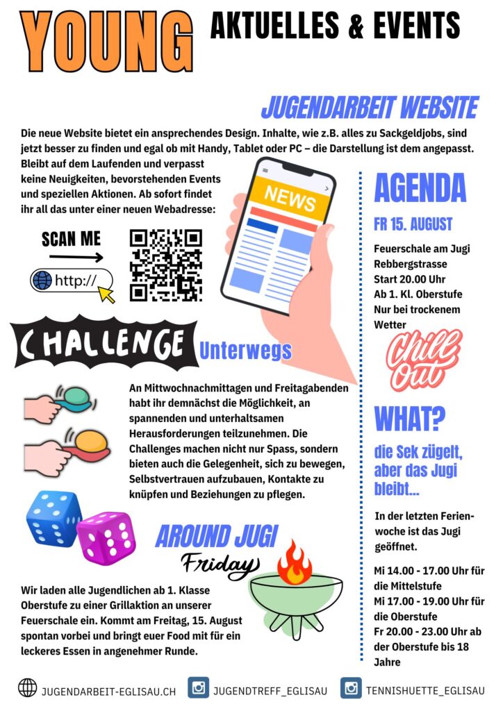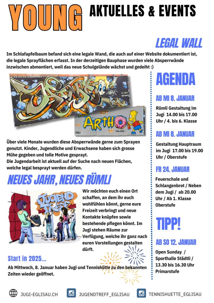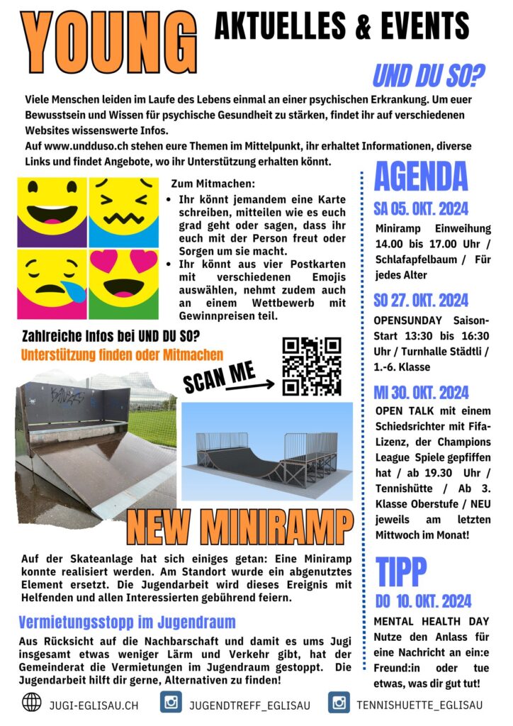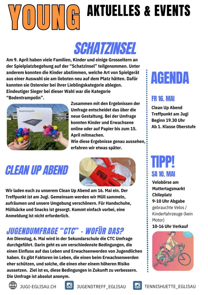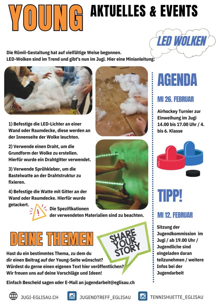 Die Seite „YOUNG – Aktuelles und Events“ erscheint jeden Monat im Mitteilungsblatt (Mibla) der Gemeinde Eglisau. Hier findest du alle bisherigen Ausgaben.